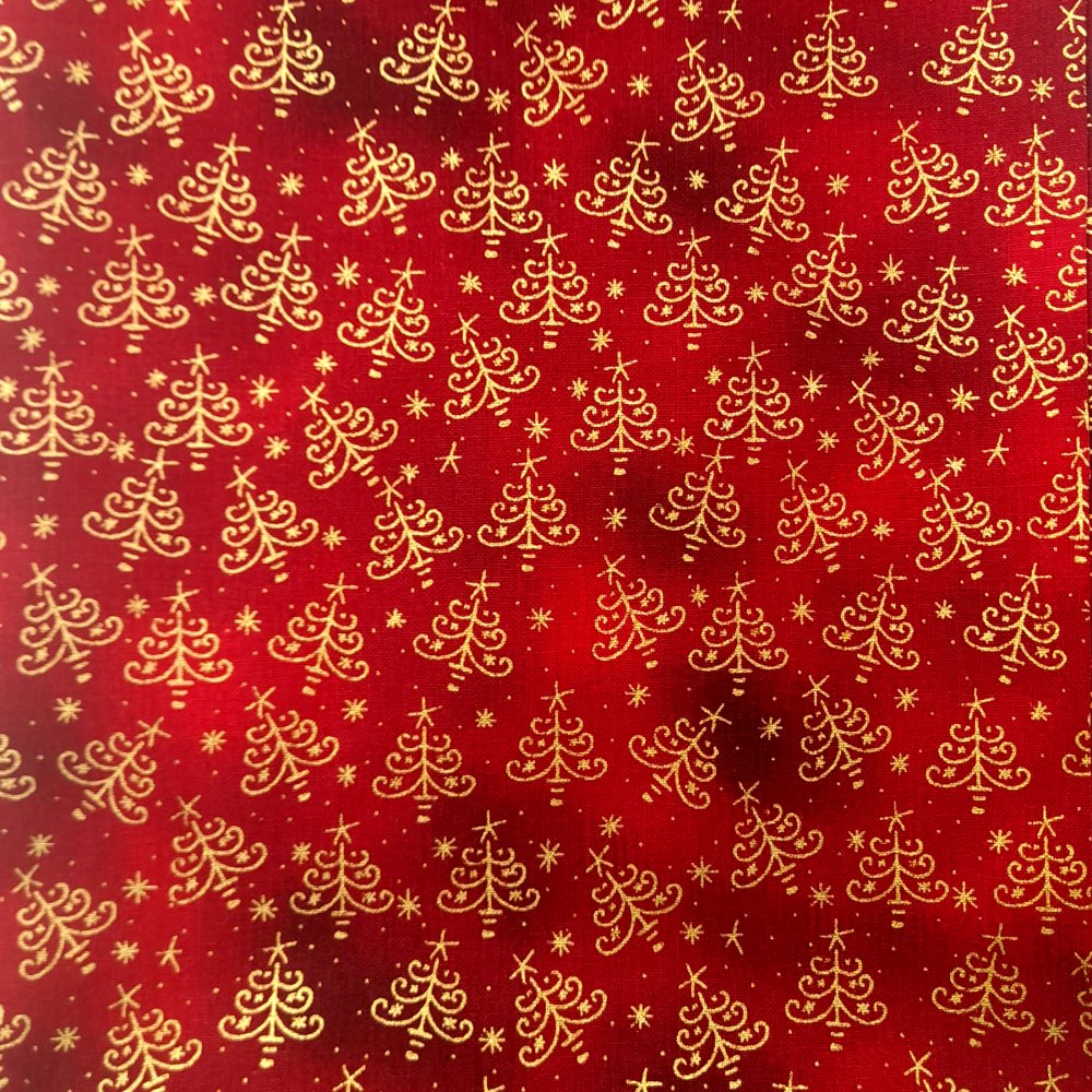 Introducing the "Christmas Trees & Stars" fat quarter fabric bundle. This fabric bundle includes 5 great fat quarters of 100% cotton light weight fabric. The bundle is comprised of various festive Christmas fabric designs, all in shades of reds, greens & blue with foil printed highlights of gold.